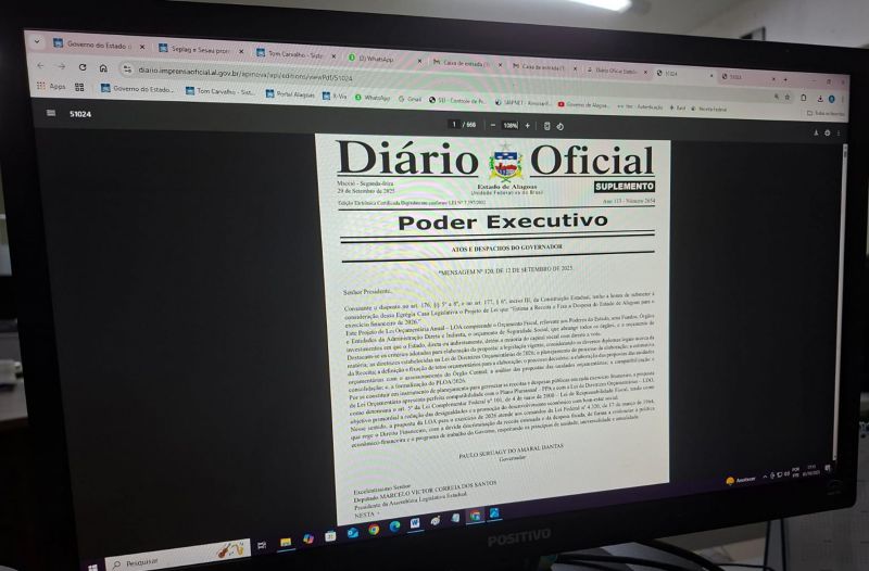 O Projeto de Lei Orçamentária Anual (PLOA) do Governo do Estado para 2026 estima uma receita bruta de R$ 26,66 bilhões, um crescimento de 13,6% ante a previsão de R$ 23,4 bilhões deste ano. De acordo com o documento enviado à Assembleia Legislativa de Alagoas (ALE) e publicado na edição do Diário Oficial do Estado (DOE) de segunda-feira (29), as despesas para o exercício de 2026 foram fixadas em R$ 21,02 bilhões.