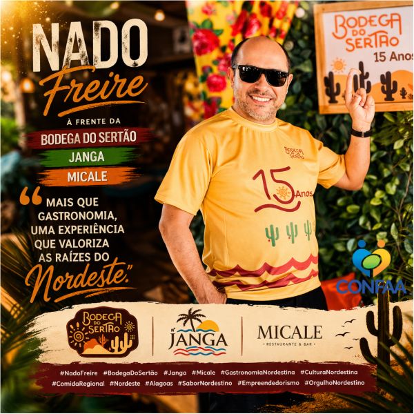 Nado Freire é um dos nomes de destaque no cenário gastronômico de Alagoas, reconhecido por sua atuação empreendedora e pela valorização da cultura nordestina através da culinária regional. Proprietário de empreendimentos de sucesso como a tradicional Bodega do Sertão, além das casas Janga e Micale, ele construiu uma trajetória marcada por visão, autenticidade e paixão pela identidade cultural do Nordeste.